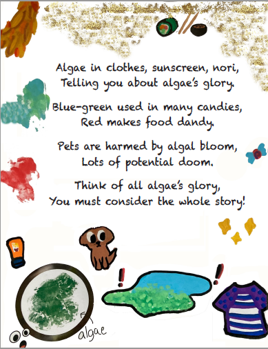 Congratulations to Gabby Cataldo, second place winner in the 3-5 grade category of the national 2023 Chemists Celebrate Earth Week (CCEW) Illustrated Poem Contest with the theme, “The Curious Chemistry of Amazing Algae.”